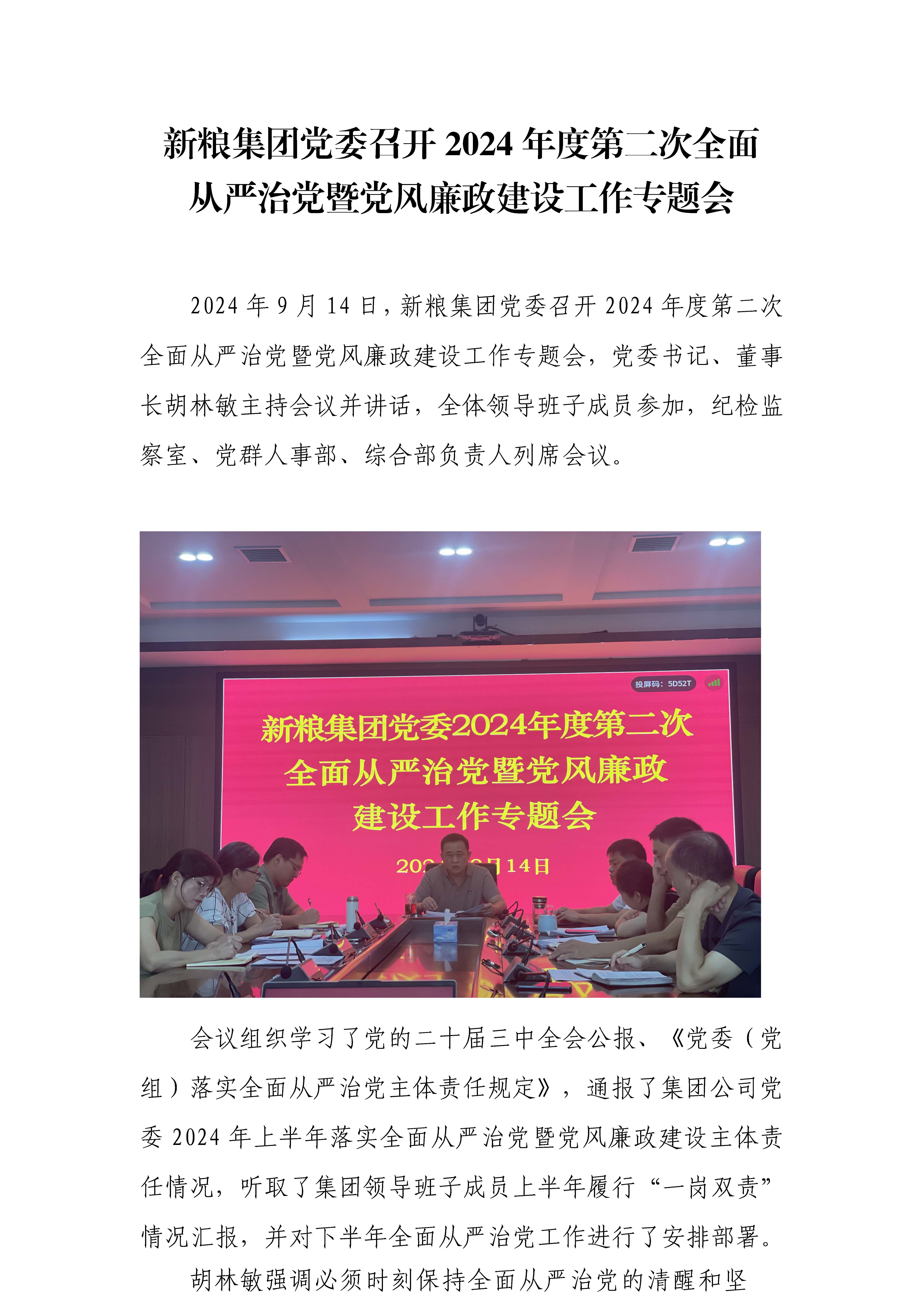 新糧集團(tuán)黨委召開2024年度第二次全面從嚴(yán)治黨暨黨風(fēng)廉政建設(shè)工作專題會