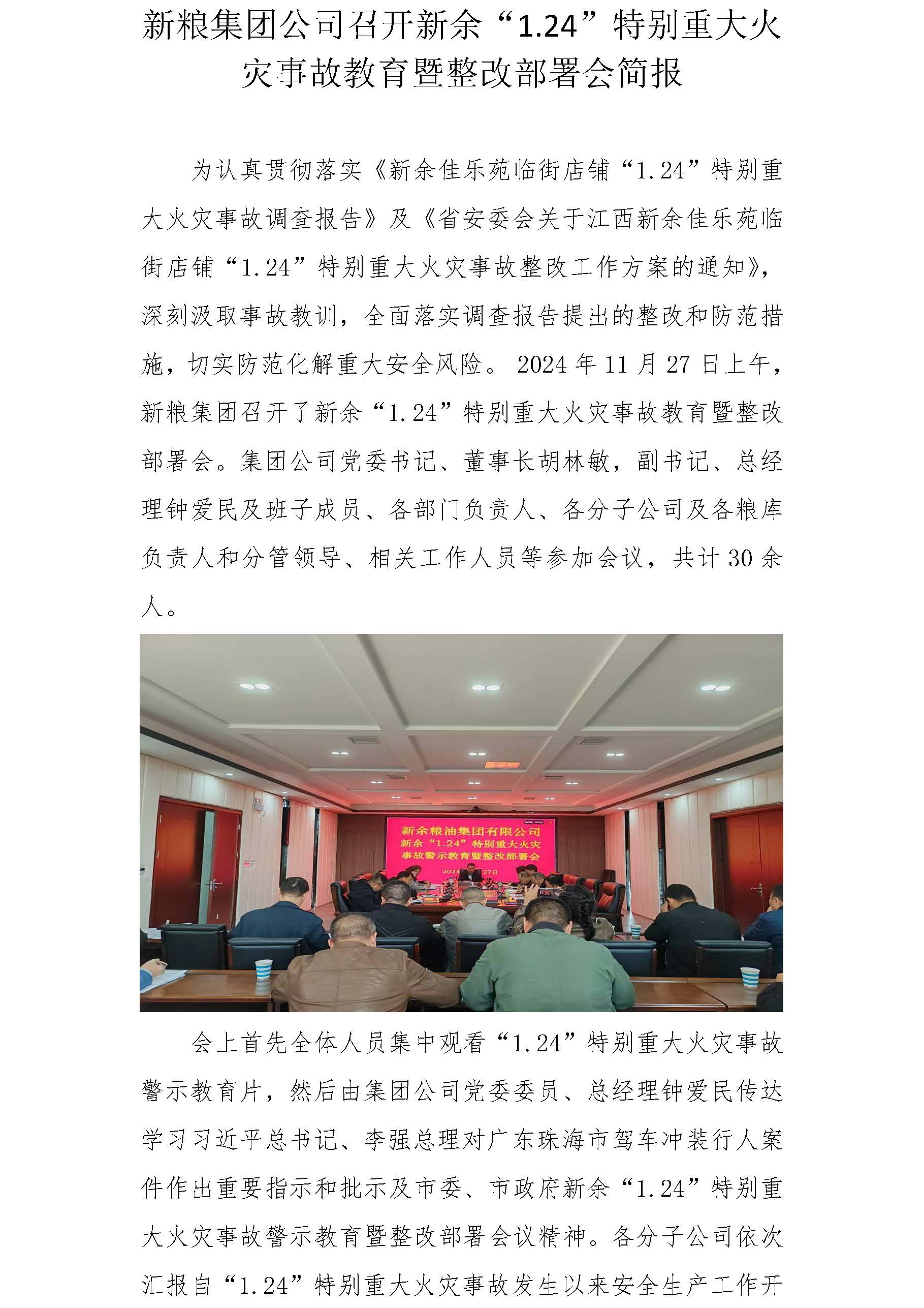 新糧集團公司召開新余“1.24”特別重大火災事故教育暨整改部署會簡報