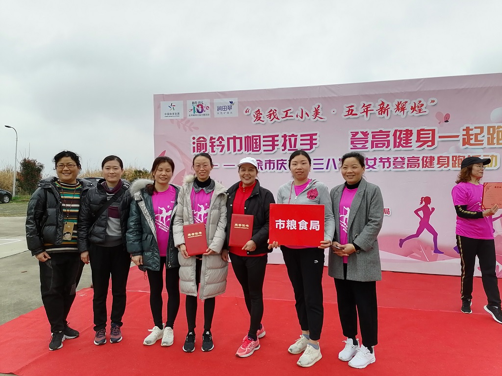 3月7日早上,新余市慶?!叭藡D女節(jié)”登高健身跑活動在仙女湖凱光新天地消防通道開賽,市內(nèi)300余名選手參賽。在賽隊(duì)列中,一個(gè)舉著寫有“市糧食局”展板的跑團(tuán)異常顯眼。“我們要跑出糧食人的精氣神!”,隊(duì)員們紛紛表示。