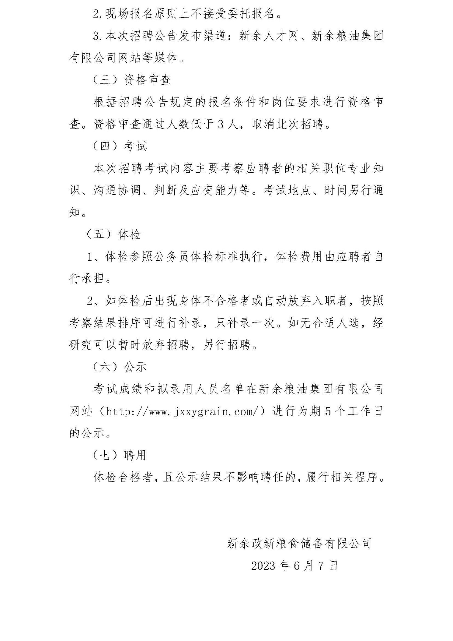 新余政新糧食儲(chǔ)備有限公司招聘公告