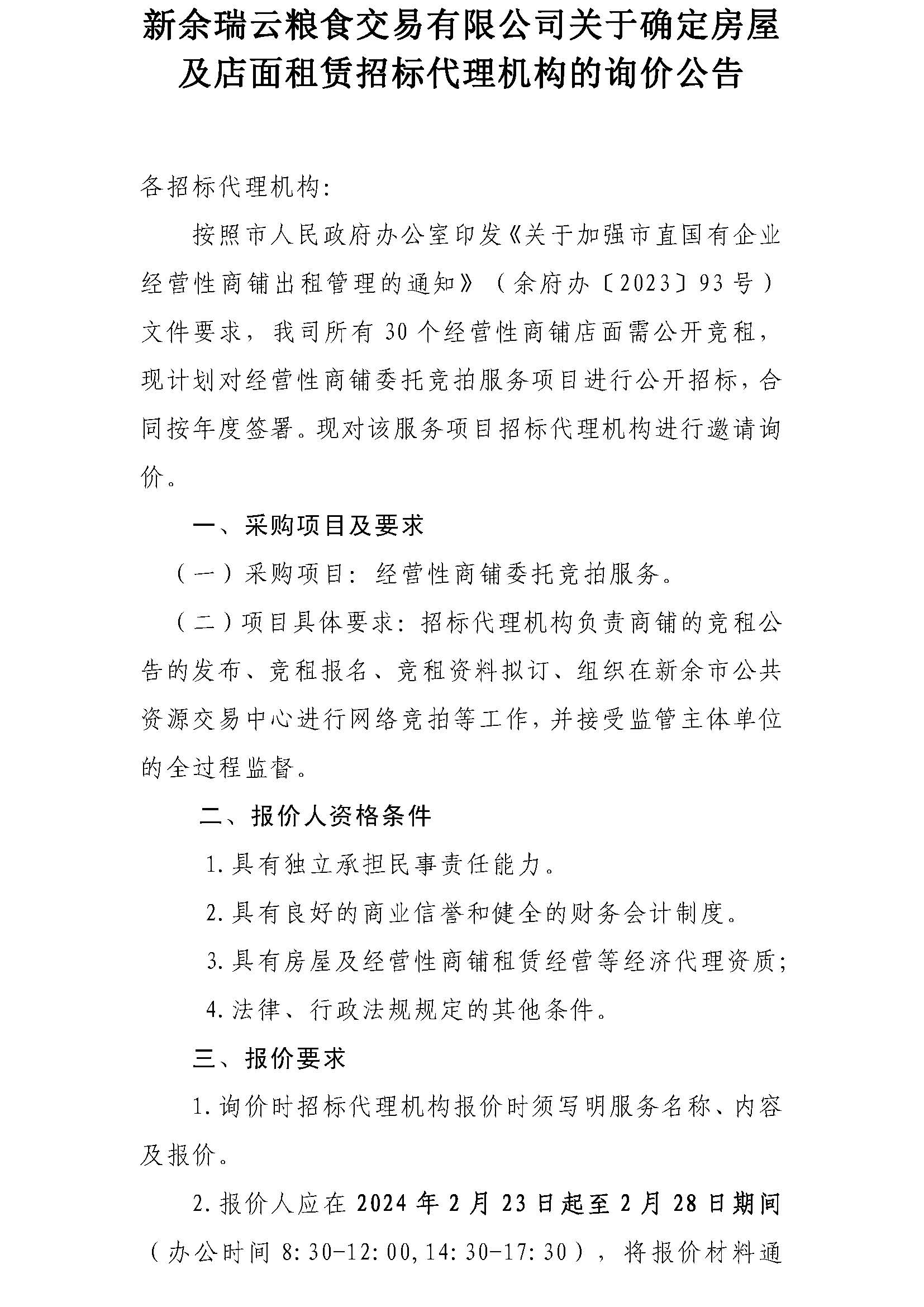 詢價(jià)公告