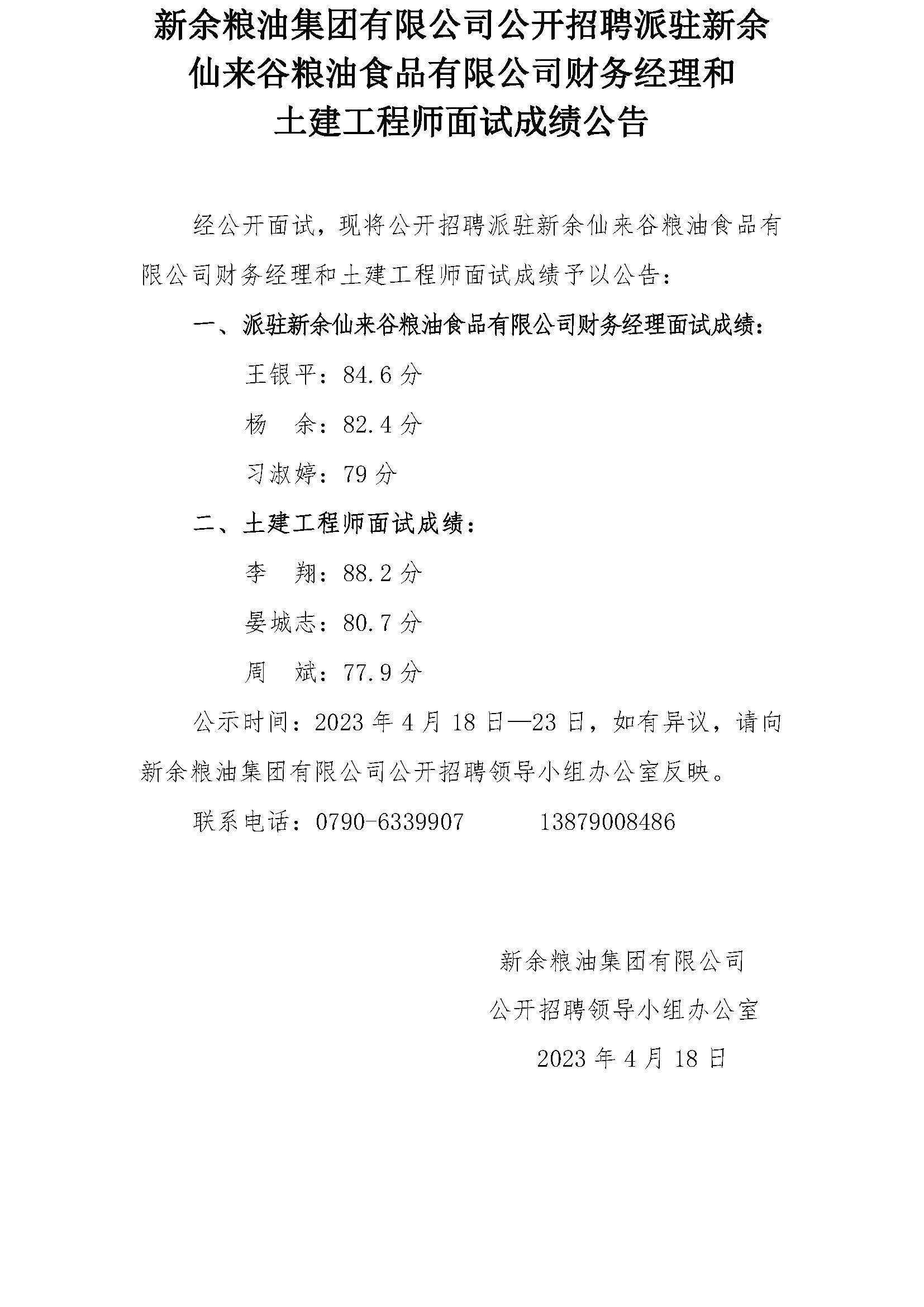 財務(wù)經(jīng)理和土建工程師面試成績公告